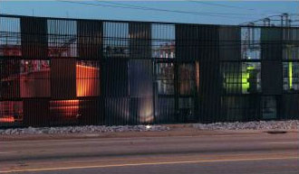 The project comes to life at night, when a computer-operated LED light system lights ups the coils with lurid neon hues. Driving by, you experience it as a surprise burst of color. It’s a strobelike performance for pedestrians or motorists who choose to stop.